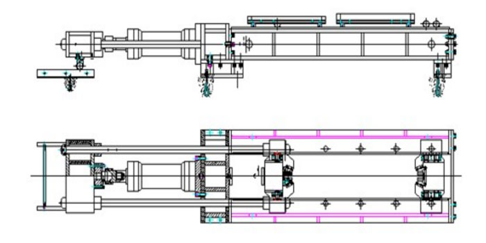 油缸為柱塞式結構,前進、后退時均采用油壓推動油缸方式平穩(wěn)工作,