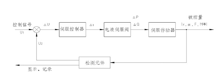 電液伺服控制系統(tǒng)由伺服控制器、電液伺服閥、伺服作動器及傳感器組成,其原理圖如下圖所示: